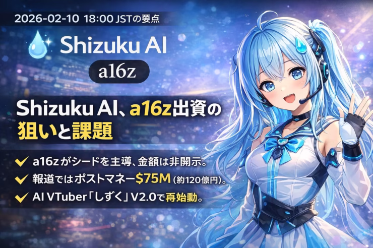 日本時間では2026-02-10にかけて報道が相次ぎ、AI VTuber「しずく」V2.0の再始動直後というタイミングも相まって話題化しています。