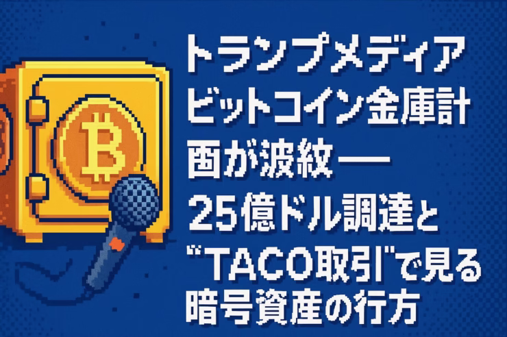 今回のトランプメディア ビットコイン金庫計画は、金融界と政治界をまたいだ大胆な動きとして各所にインパクトを与えています。これほど大掛かりにビットコインを“企業金庫の軸”と位置付ける取り組みは、MicroStrategyに次ぐ例といえるでしょう。一方で、発表の翻意や政治的駆け引きで市場が翻弄される現象は“TACO取引”として揶揄され、暗号資産市場のボラティリティ要因の一つになっています。